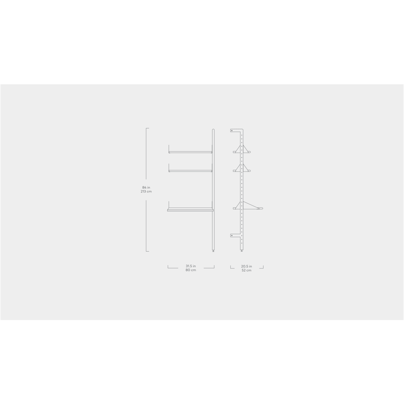 W31.5 D11.5 (shelves)/20.5 (desk) H84