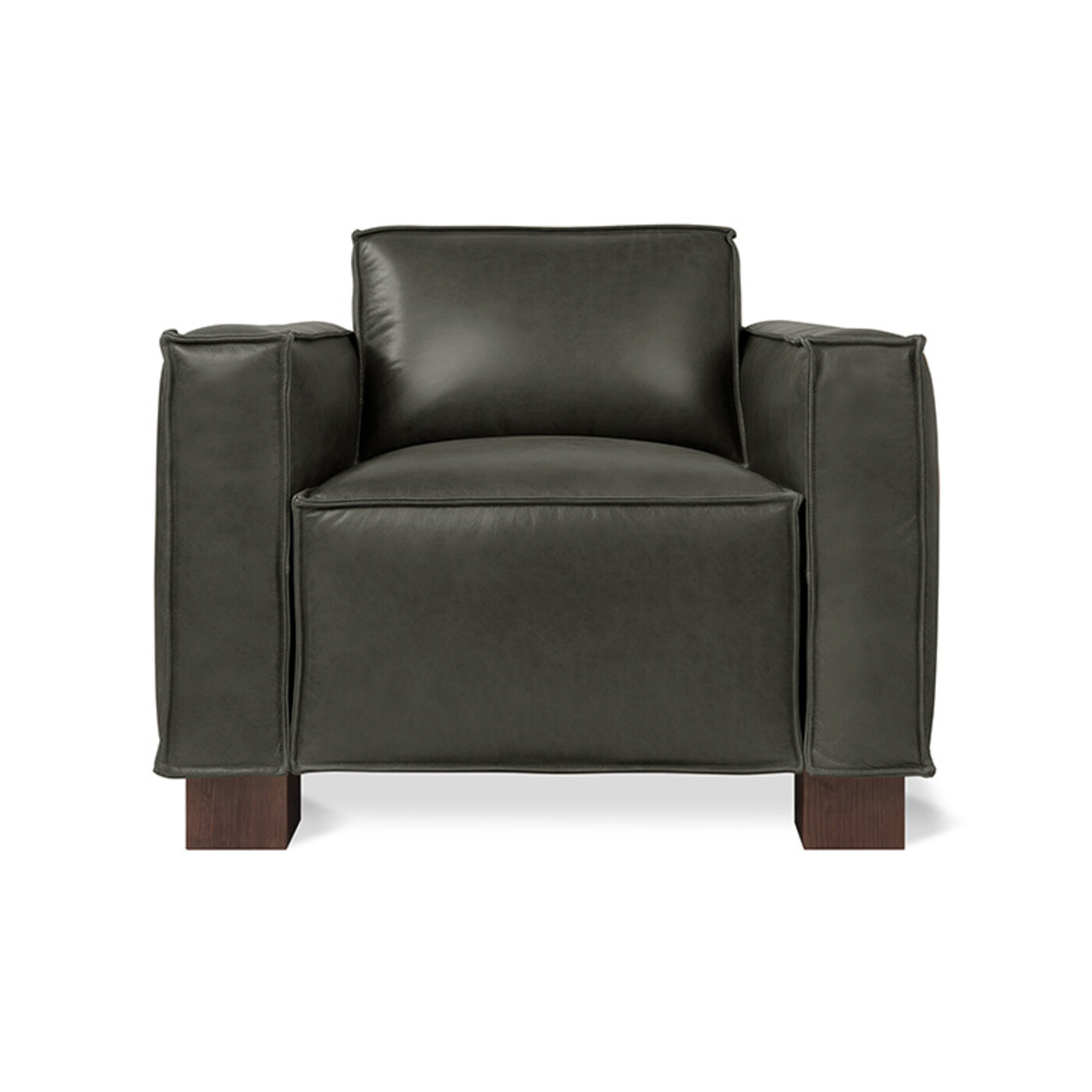 The Cabot Chair features a tight seat and back, with architectural, wood block feet and simple French seams, offering a comfortable, modern take on a traditional, masculine design. Available in three vintage leathers chosen for their unique grain characteristics that will age beautifully and develop a rich, natural patina over time. Leather is top grain, aniline-dyed.