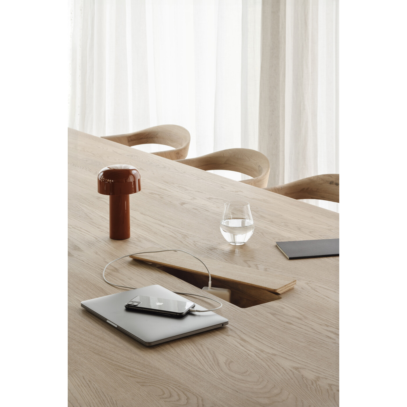 The Geometric meeting table elevates a professional space with softened edges and natural lines at play, adding volume and practical comfort further enhanced by integrated wire management.