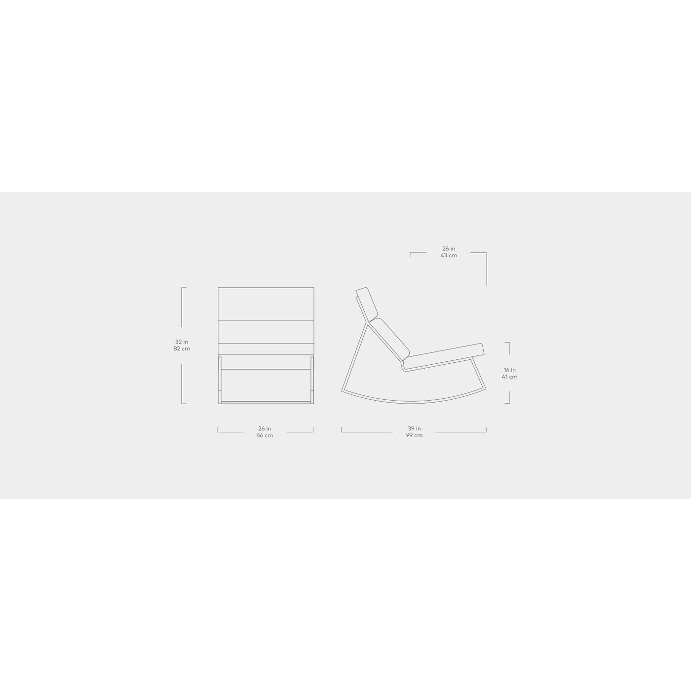 The Gus* version of the perfect modern rocking chair; featuring a powder coated frame with architecturally-styled cushions inspired by airport lounge seating and 70's car interiors.