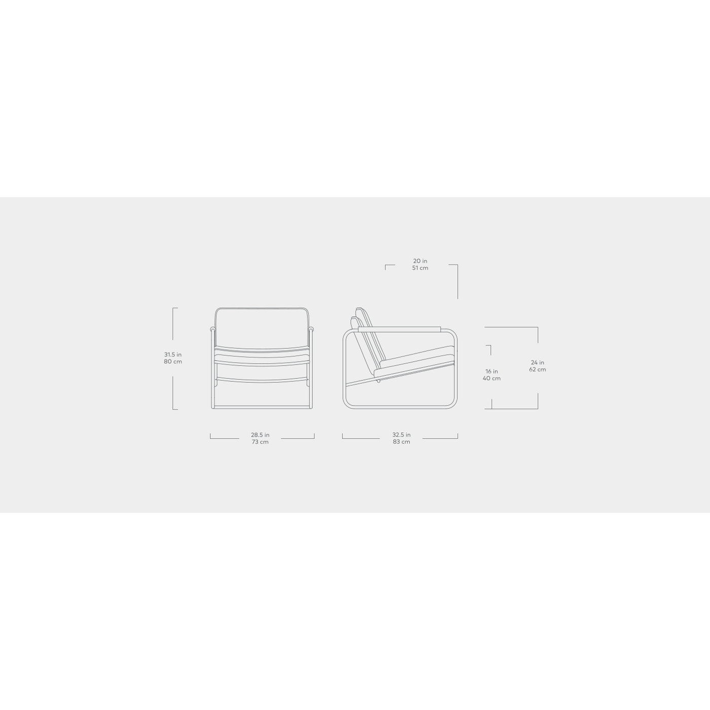 Knife‐edge, pillowtop seat and back cushions are crafted with Dacron‐wrapped, high resiliency, medium density foam. Velcro attachments underneath cushions for a secure connection to upholstered frame. Kiln‐dried FSC®‐Certified hardwood (FSC® 092551) wood frame with an elastic webbing suspension system. Bench‐made, powder‐coated solid steel, sled base frame with solid FSC®‐Certified ash or walnut arm detailing. Non‐marking leveler feet integrated into base to protect hardwood floors and can be adjusted for stability on uneven floor surfaces. Manufactured to meet California TB117‐2013 fire safety standards without the use of flame retardant additives in the upholstery foam. Wood is a natural material, with variations in grain pattern and colour that make each design unique.