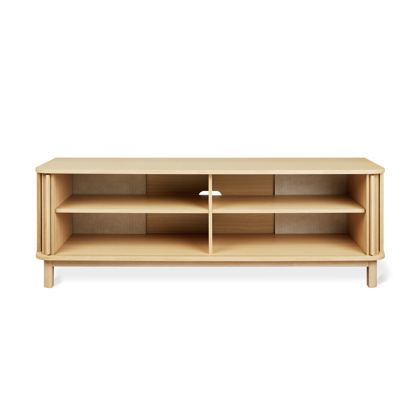 Stylishly reveal or conceal with Ledger, a contemporary storage design that showcases gorgeous tambour wood sliding doors, elegant proportions and skilled craftsmanship.