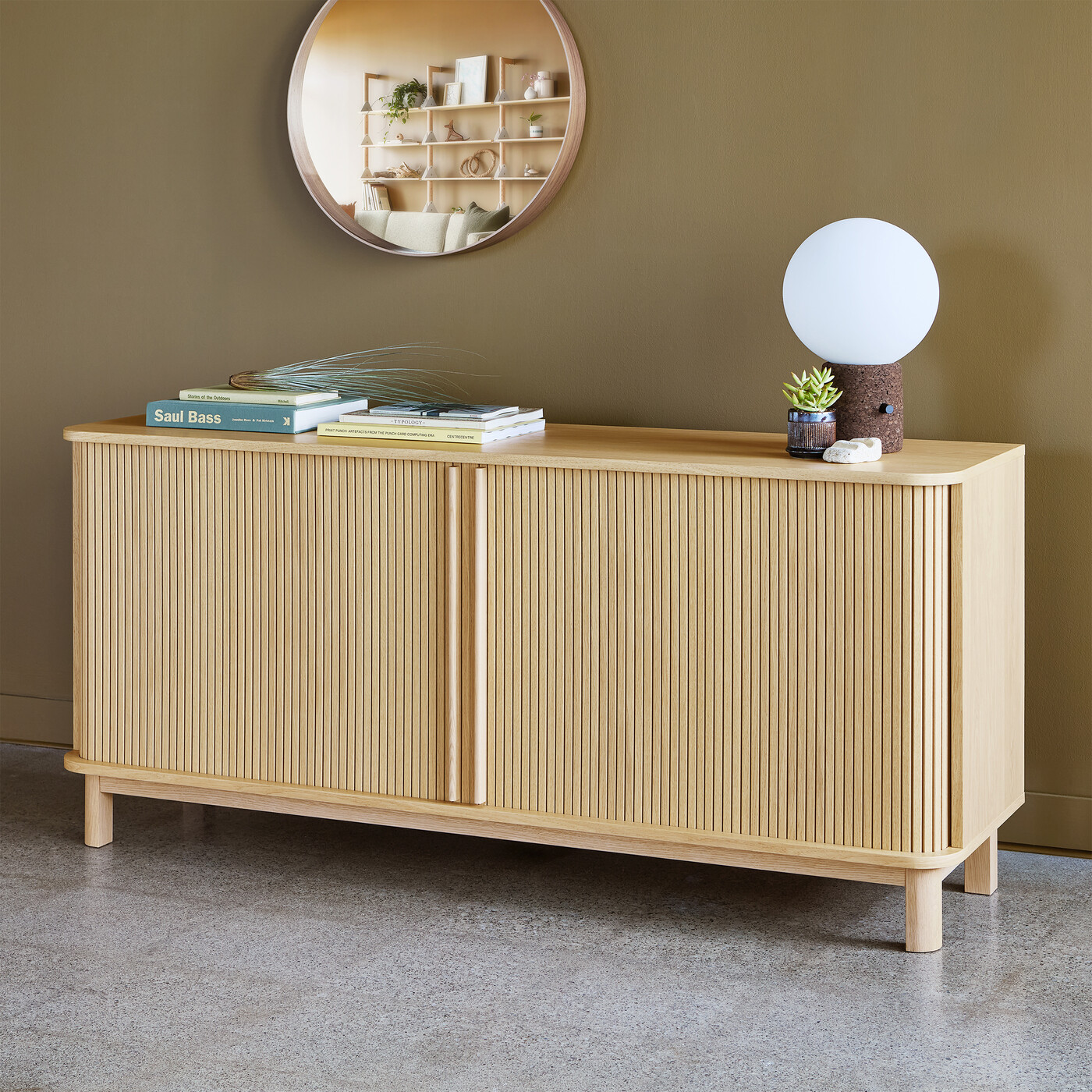 Stylishly reveal or conceal with Ledger, a contemporary storage design that showcases gorgeous tambour wood sliding doors, elegant proportions and skilled craftsmanship.