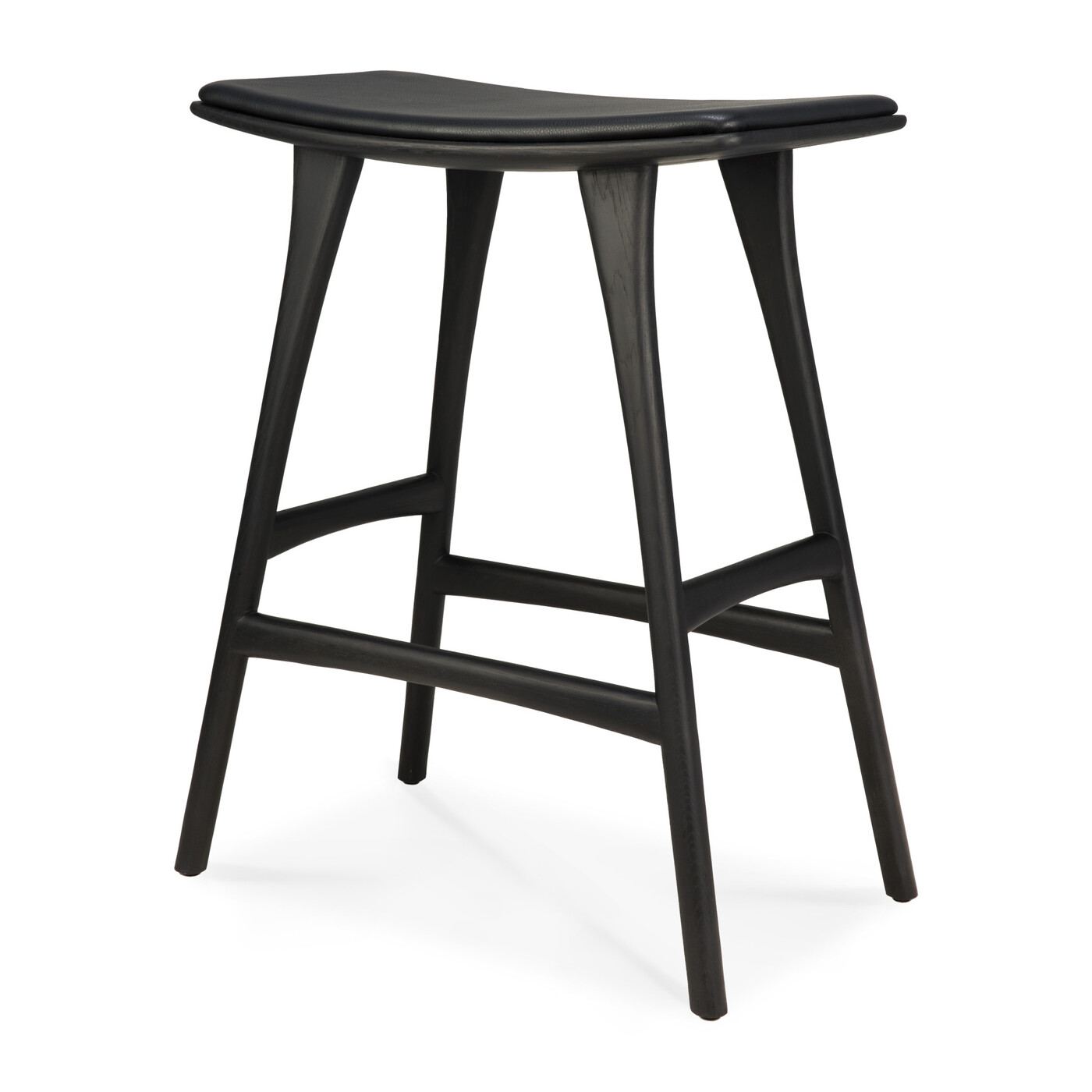 OSSO COUNTER STOOL - VARNISHED OAK - BLACK - BLACK LEATHER by Ethnicraft