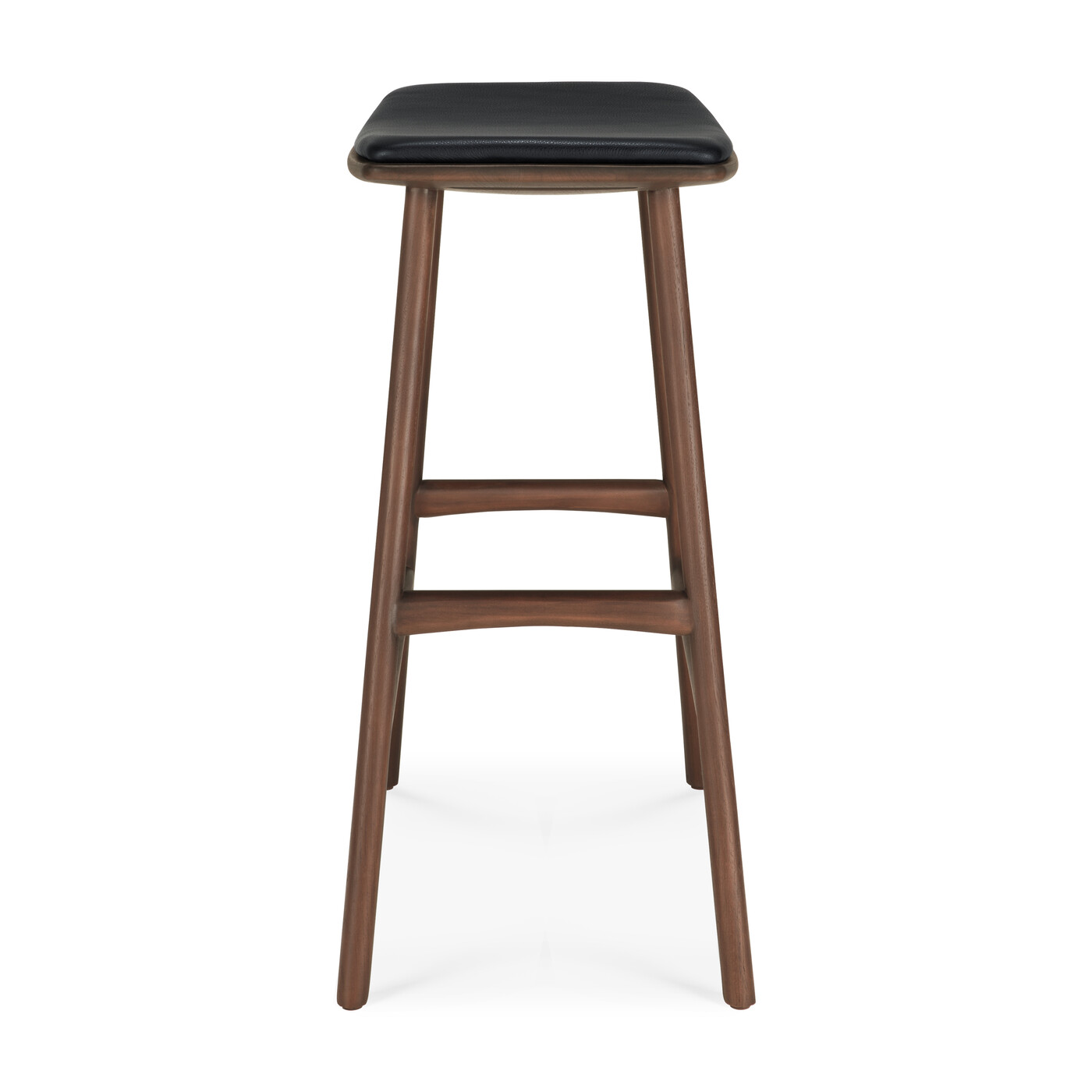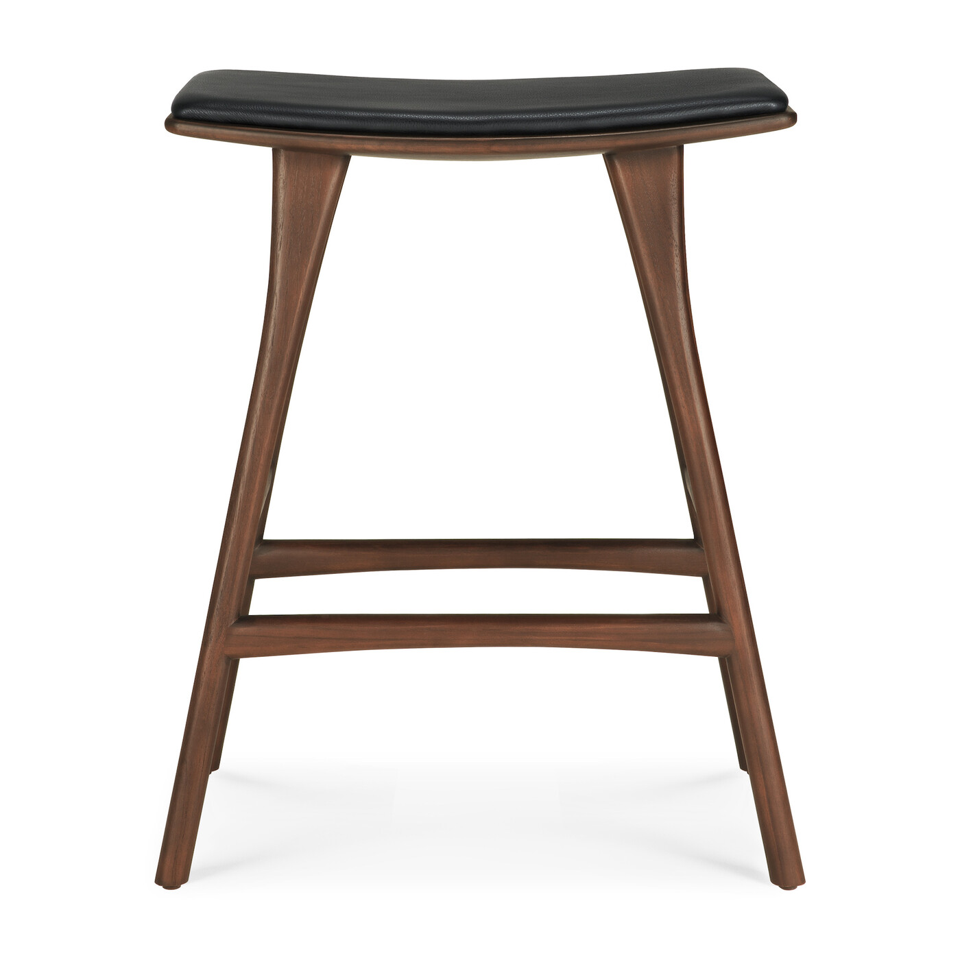 OSSO COUNTER STOOL - VARNISHED BROWN TEAK - BLACK LEATHER by Ethnicraft