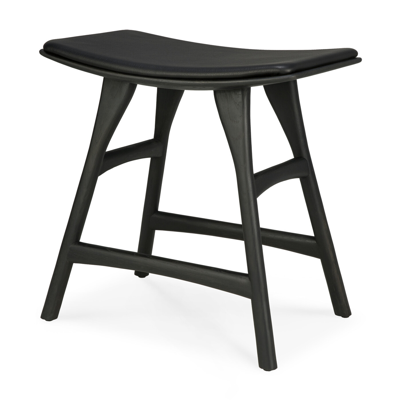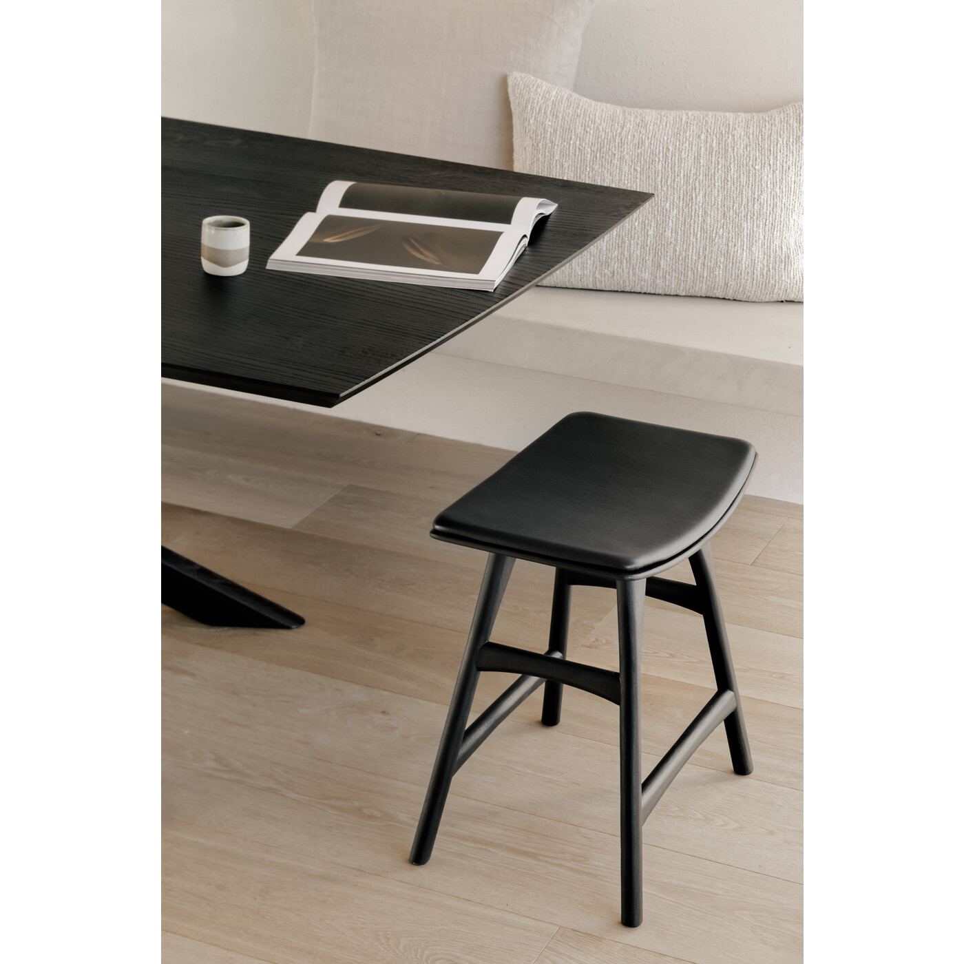 OSSO TABLE STOOL - VARNISHED OAK - BLACK - BLACK LEATHER by Ethnicraft