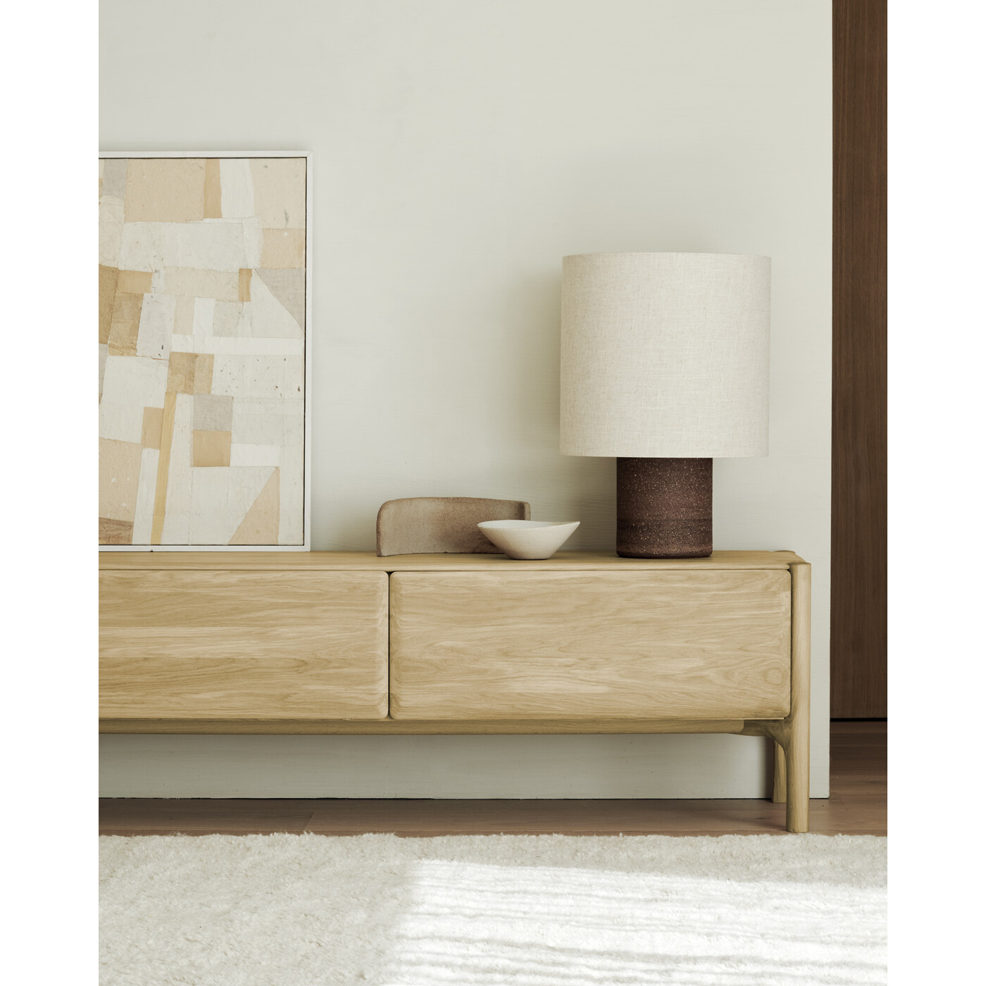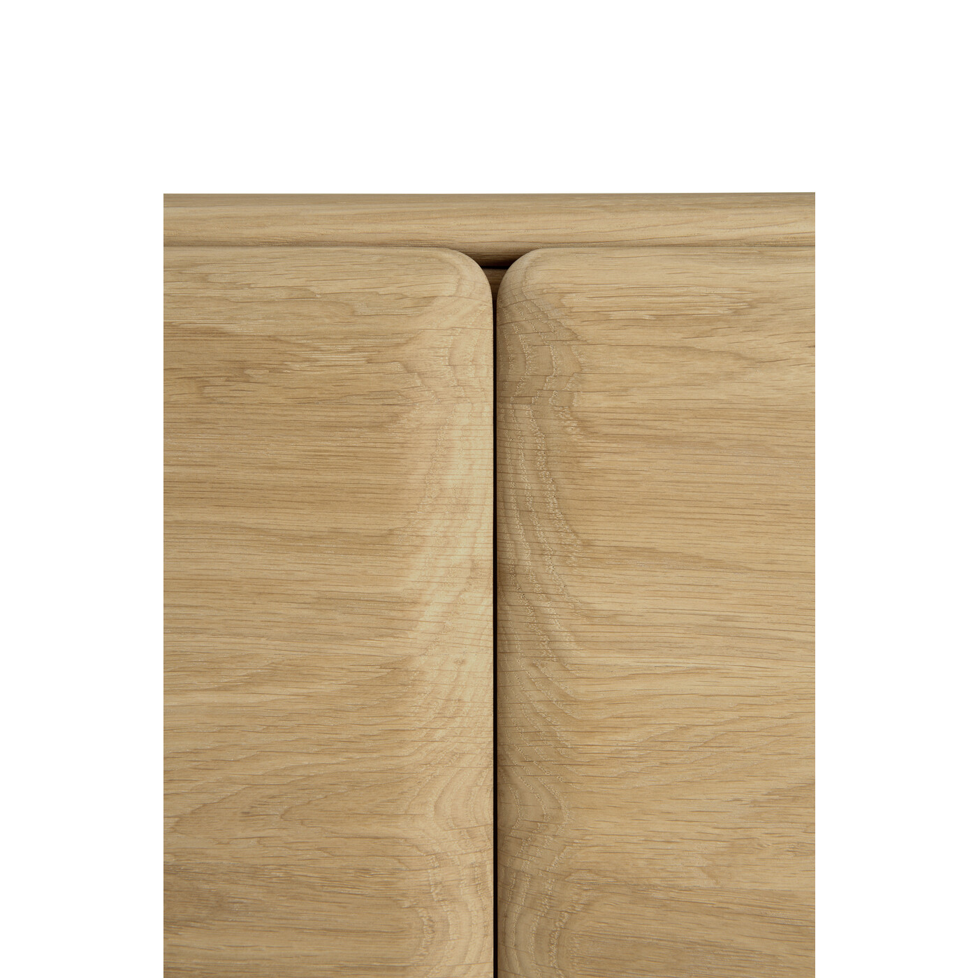 Each PI item is finished by hand to ensure that the individual character of the wood is respected. The PI TV cupboard is striking and unique, with practical storage to complement the lounge space. This PI TV cupboard features 1 flip-down door and 1 drawer. Made from solid oak with a hardwax oil finish.