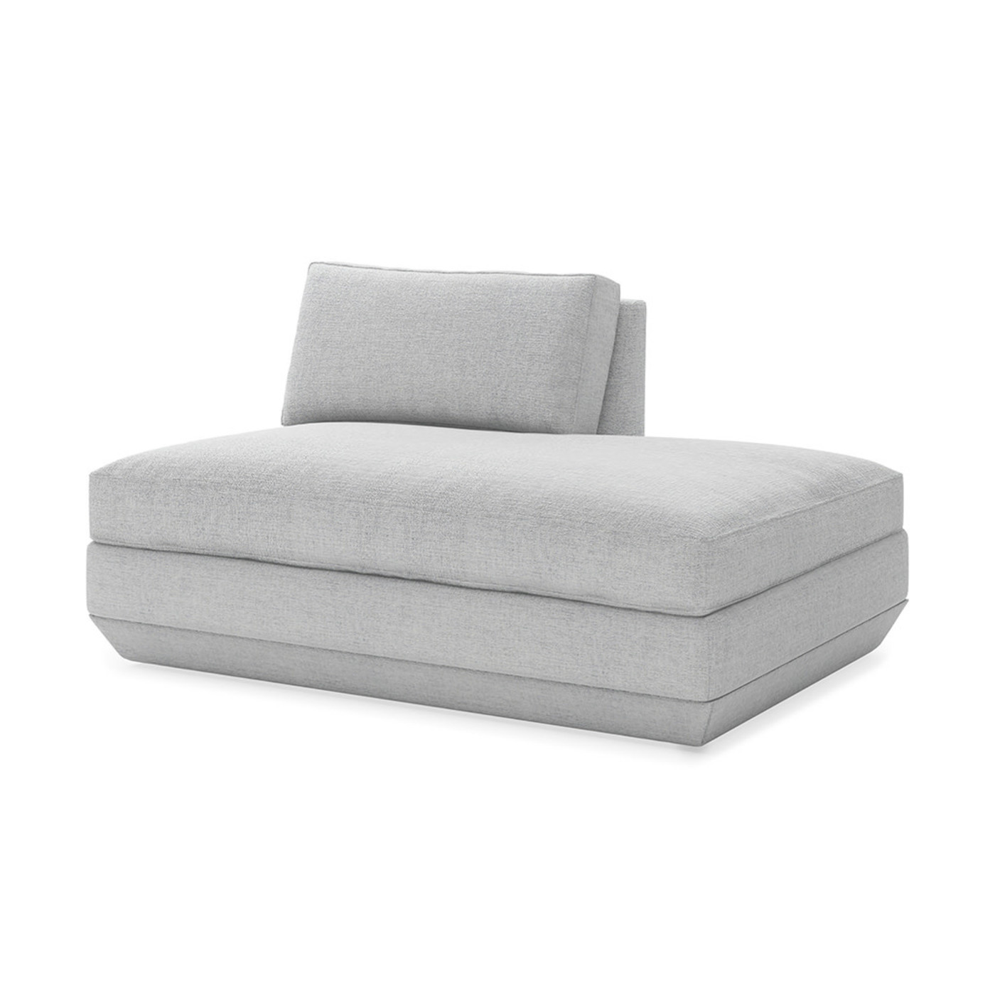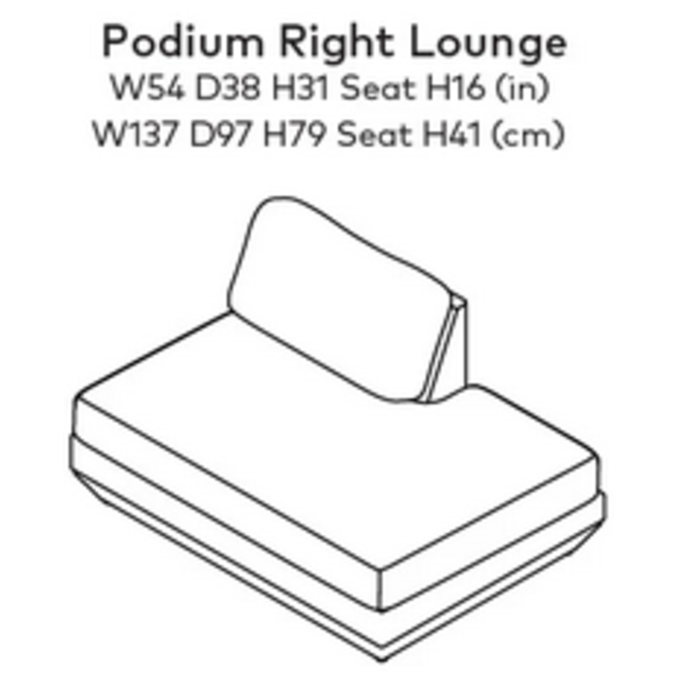 The Podium Modular Collection is an adaptable seating system that brings modern elegance and luxurious comfort to any space. The Podium features seven core components (Right Arm, Left Arm, Armless, Corner, Ottoman, Left Lounge and Right Lounge) that can be arranged in unlimited configurations to suit any vision or layout. Components can then be easily reconfigured or added later to adapt to your evolving lifestyle. Each component showcases a relaxed silhouette inspired by 1970’s Modernism: a low and deep sit created by plush seat and back cushions (filled with eco-friendly synthetic down derived from recycled water bottles), and an attractive, subtly angled, chamfered base. The frames are constructed with kiln-dried 100% FSC®-Certified hardwood in support of responsible forest management.