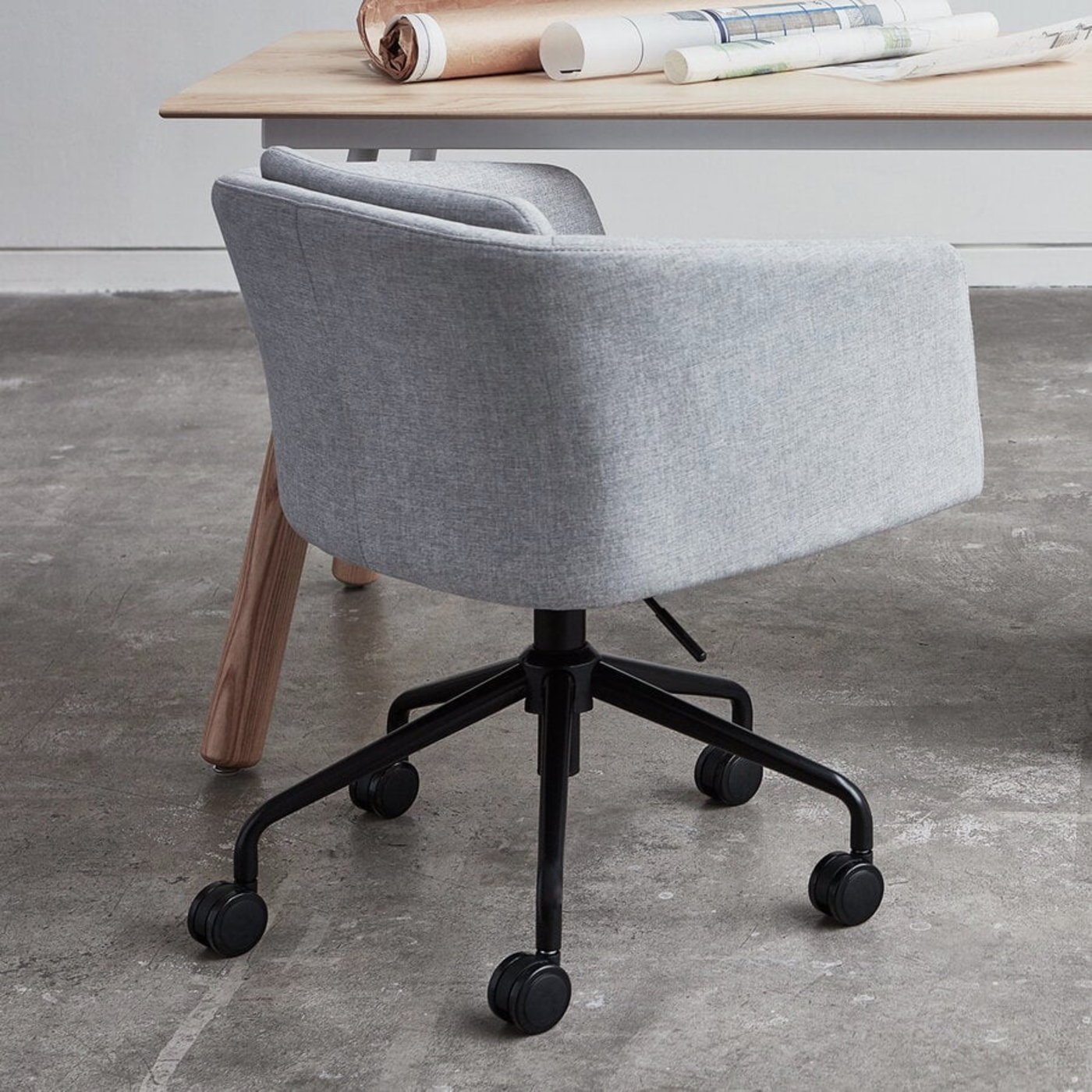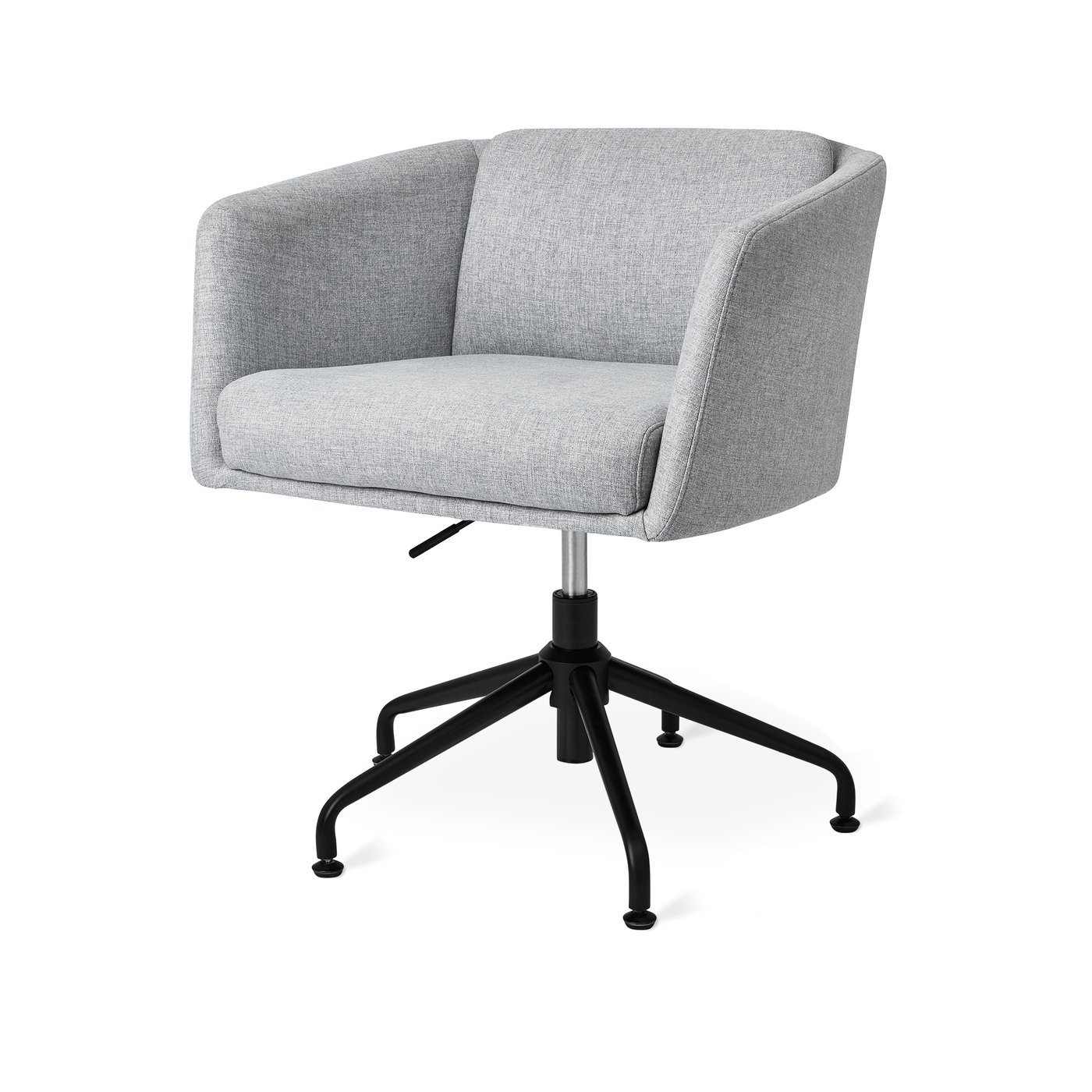 With an elegantly upholstered tub-style form, the Radius Task Chair is office furniture that captivates with its casual sophistication. Centering a stylish aesthetic and welcoming feel, Radius makes no sacrifices in function: adjustable height, swivel ability, and an option to configure with rolling castors or stationary feet make it the perfect addition to the modern workspace.