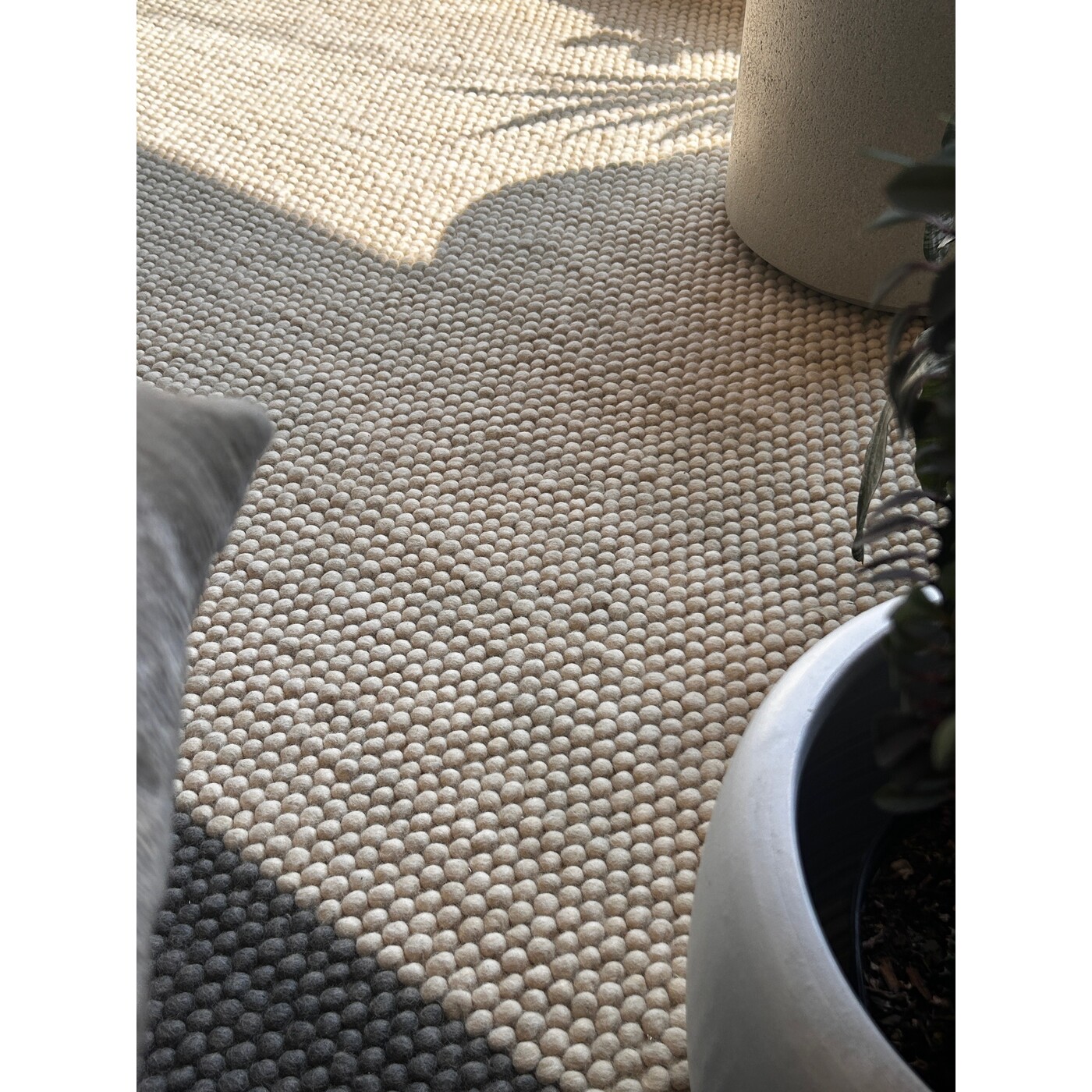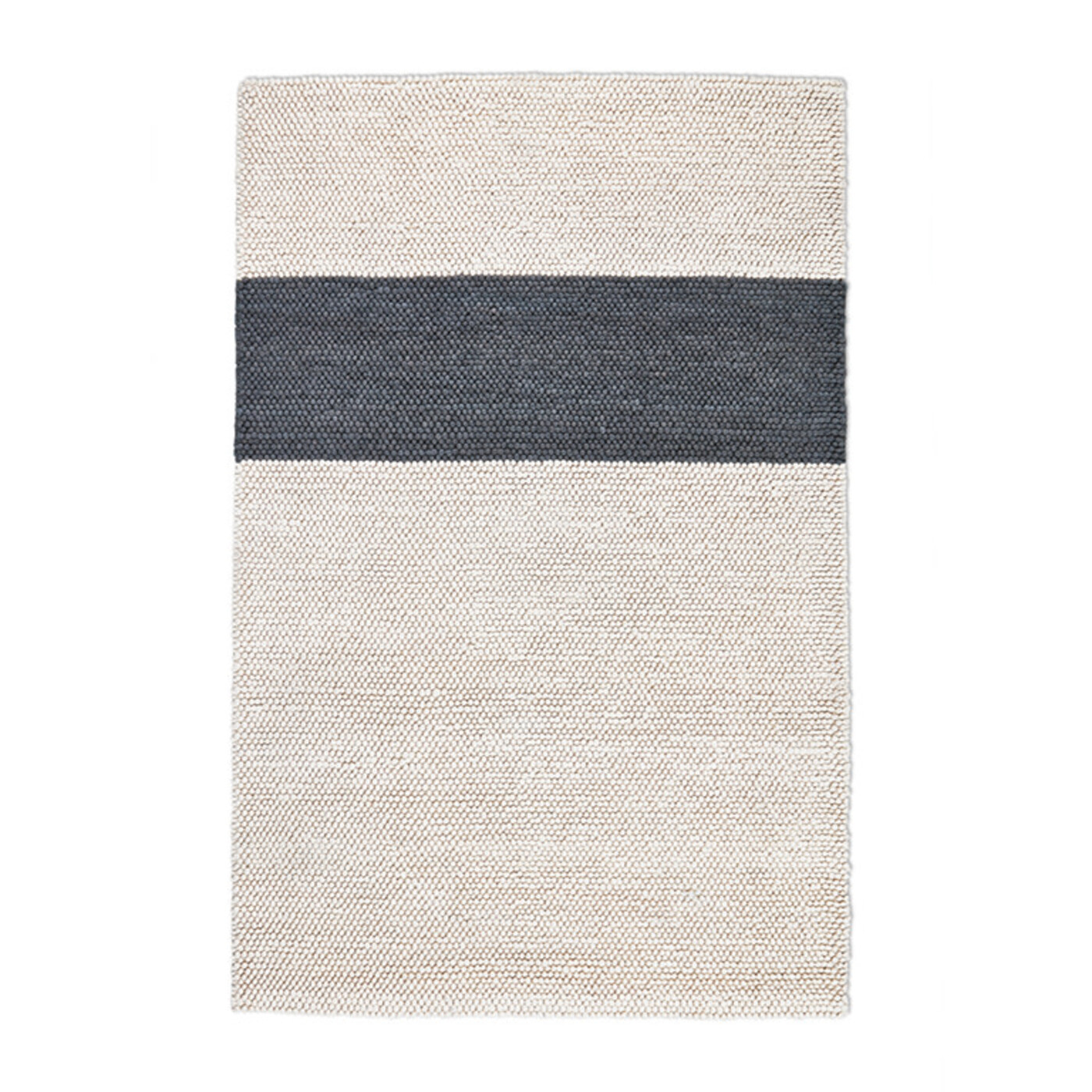 Showcasing a harmony of chunky texture and simple, abstract composition, the Bala series brings a sense of Scandinavian-inspired comfort into your space. Made from 100% New Zealand wool, each rug is hand-woven and features oversized knots to create a textural surface that is warm, inviting and cozy underfoot. A single stripe of subdued colour draws your eye across the rug’s nubbly surface. Available in two colourways and two sizes, this rug is perfect for bedrooms, nurseries and living rooms.