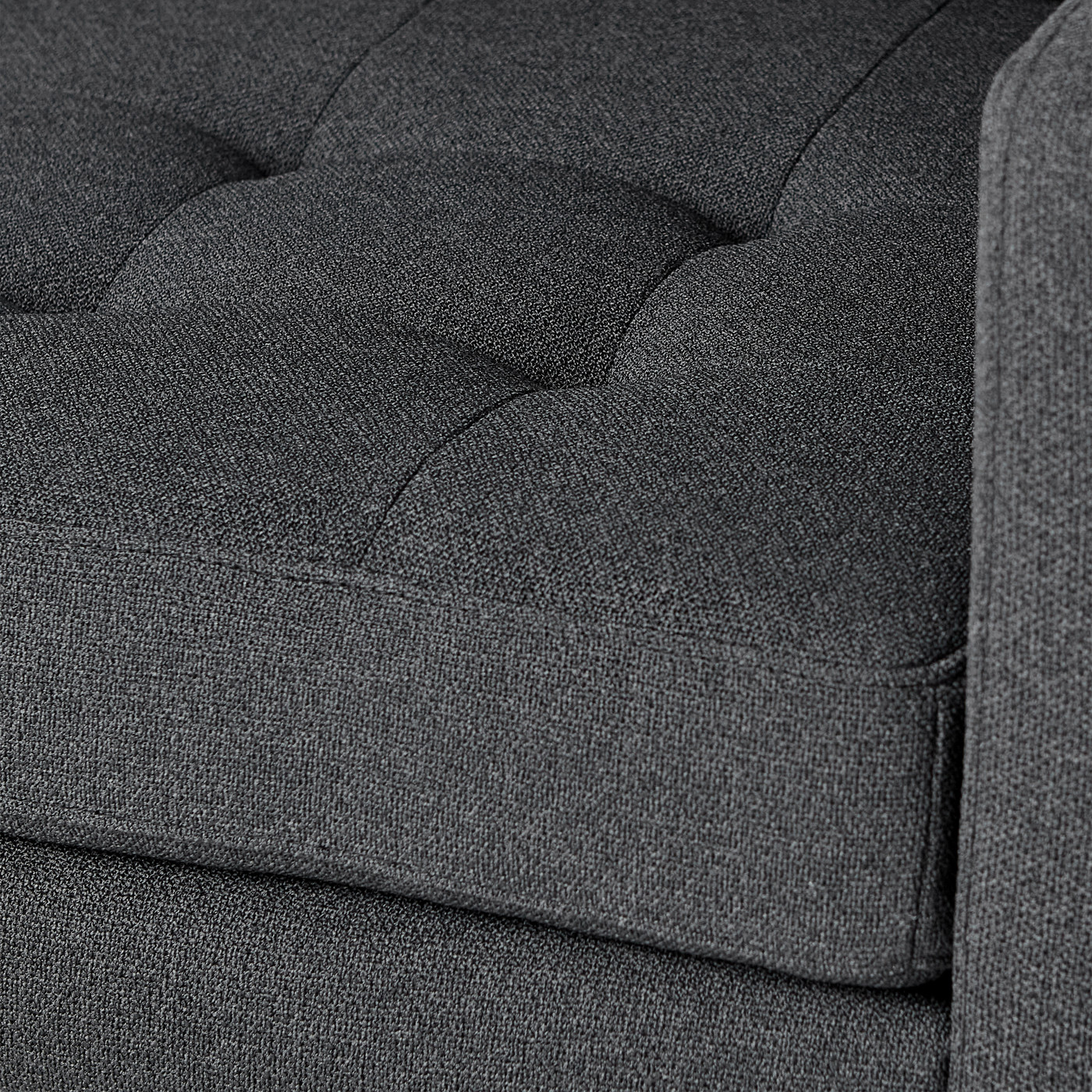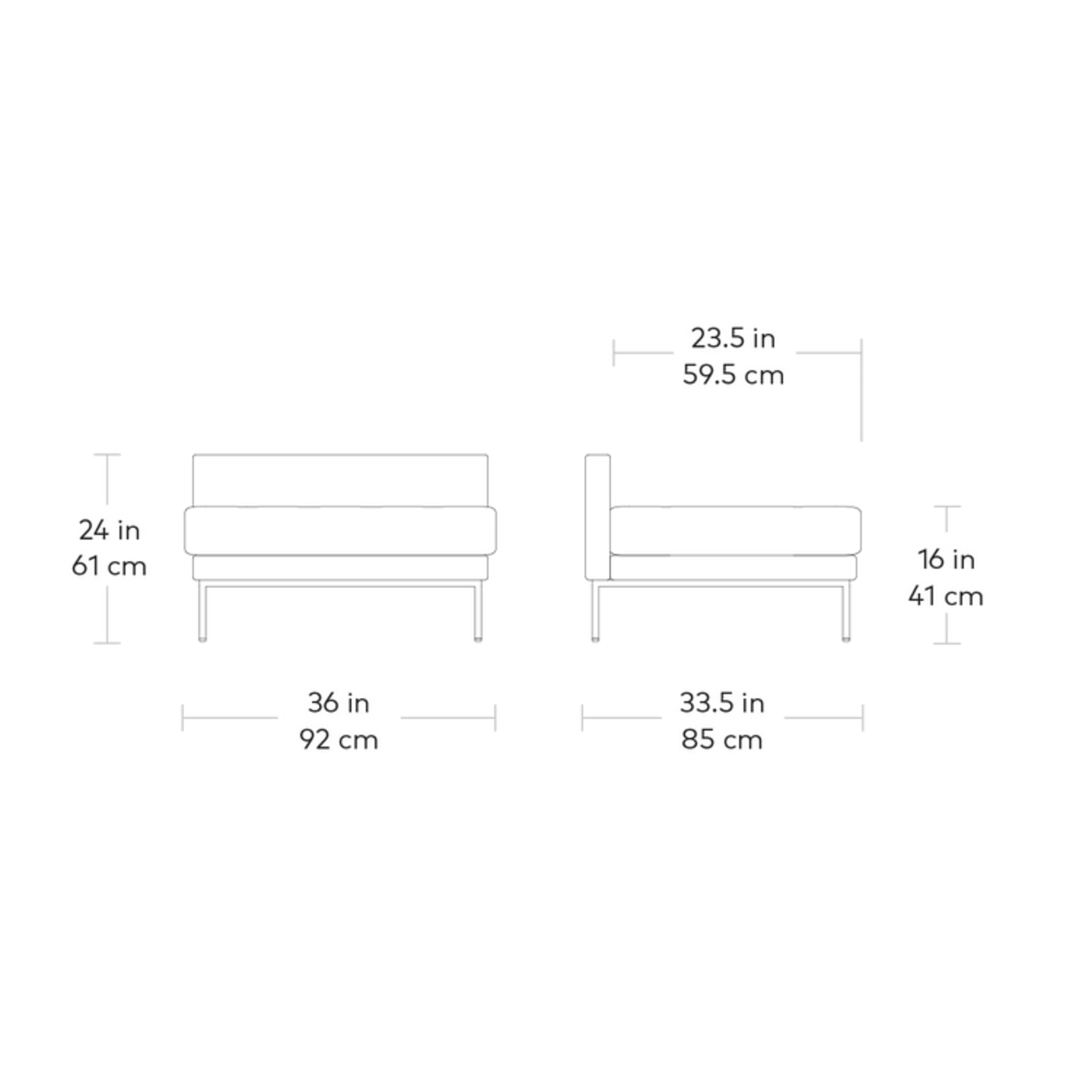 Add the Towne Lounge to the Towne Sofa to create the Towne Bi-Sectional. All fabric is California TB117-2013 certified and double rub tested.Manufactured to meet California TB117-2013 fire safety standards without the use of flame retardant additives in the upholstery foam. Inner frame is 100% kiln-dried FSC®-Certified hardwood in support of responsible forest management (FSC® 092551). Blind-tufted seat and back cushions are crafted with high resiliency medium density foam covered in a Dacron wrap. Hidden center leg added for extra support. Cylindrical legs are made from black powder-coated steel. Non-marking leveler feet can be adjusted for stability on uneven floor surfaces. Frame is reinforced with steel for long lasting durability. 9-gauge No-Sag, sinuous spring suspension system. All joints have been stress tested.